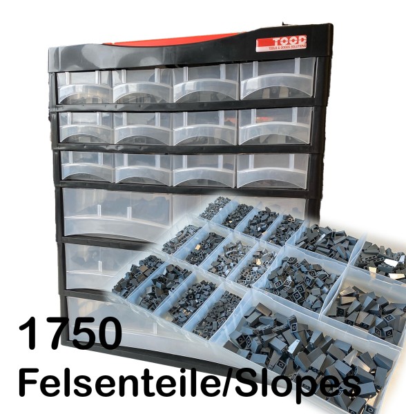 Sortimentskasten P17 - gefüllt mit 1750 Felsenteile - grauen Slopes