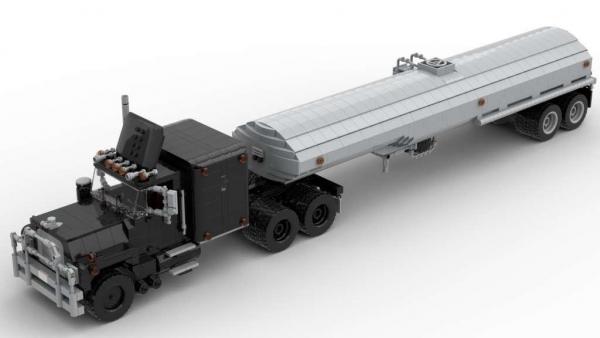 Klassischer schwarzer LKW mit Trailer