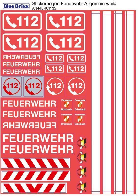 Stickerbogen Feuerwehr Allgemein weiß